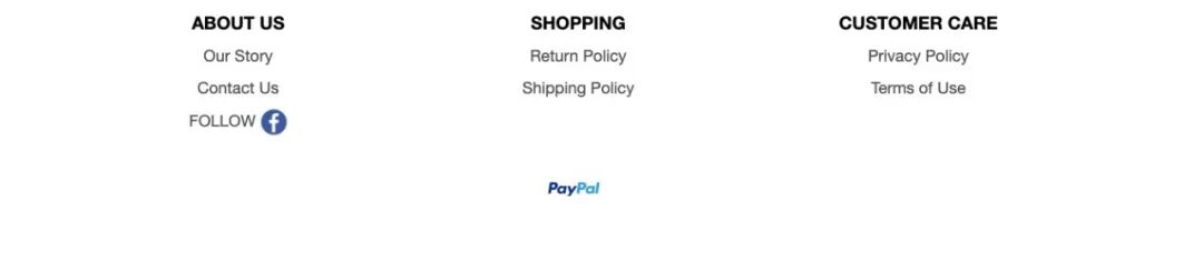 4.网站布局中一定要有的部分包括:About us 公司简介、Return policy 退货政策、Shipping policy 快递政策