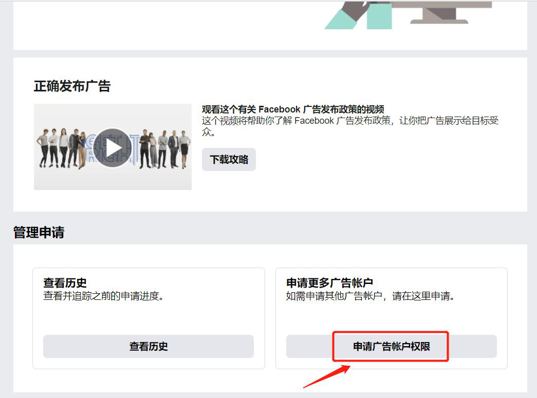 如果不幸您因经验欠缺开户申请被驳回,别担心,我们在将提交开户的页面滑到底端,找到“申请广告账户权限”,点击“新建公司档案”重新填写即可。