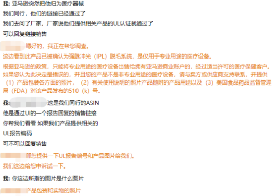 不过,昨日,有卖家爆料称其同行在链接变狗后向亚马逊提供了脱毛仪相关的UL认证,产品链接就恢复了正常销售。