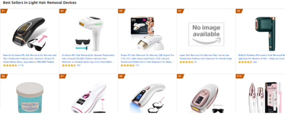 现在打开亚马逊平台搜索脱毛仪已经只剩下飞利浦、朗博、Braun等品牌的181个Listing在销售,其他中小卖家所销售的脱毛仪已经从变狗到下架了。