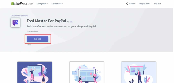 2. 访问 Tool Master For PayPal的⻚⾯点击 Add app 按钮添加App。